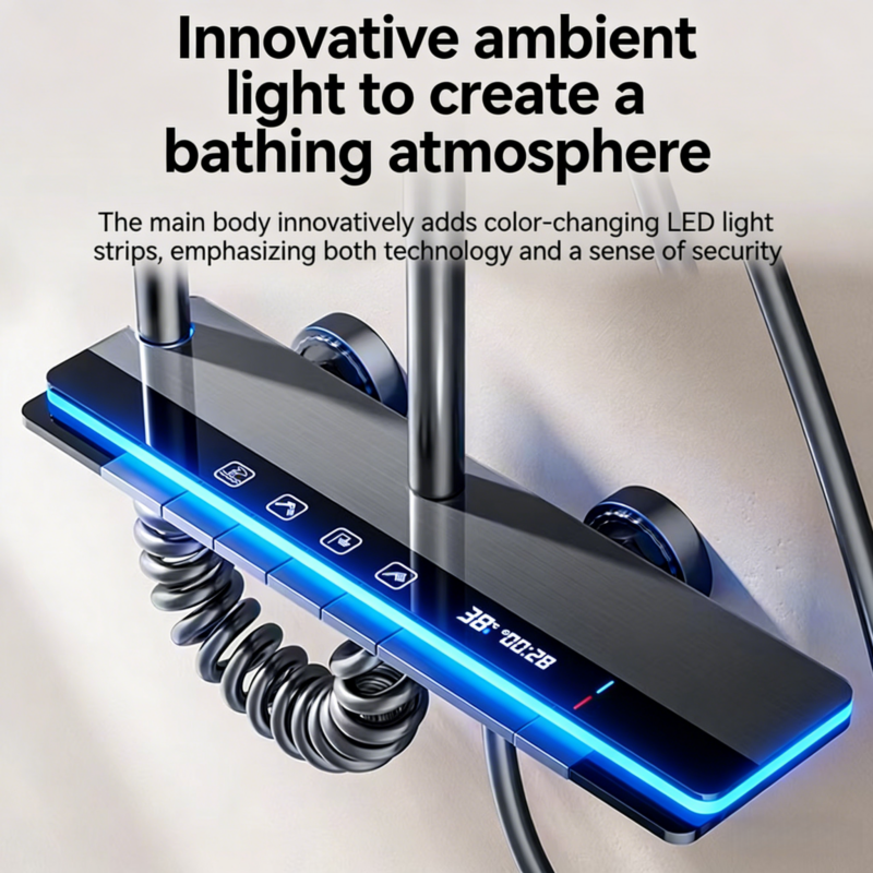 A complete set of shower heads for home, hotel and guesthouse, featuring intelligent digital display, ambient temperature control and constant temperature for bathroom shower.